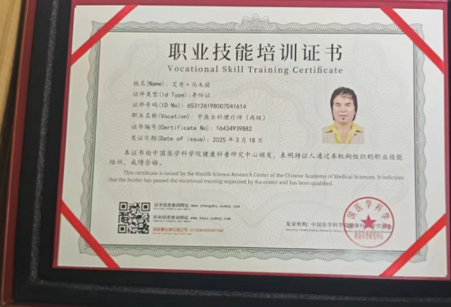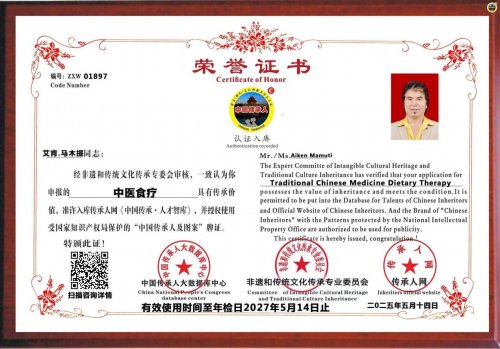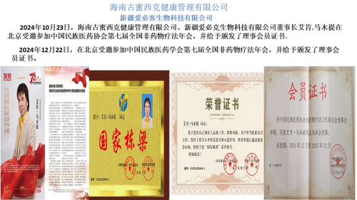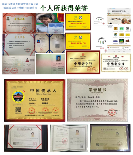 十五五中医药规划建议专家 新疆爱必客生物科技有限公司 海南古蜜西克健康管理有限公司董事长 高级健康管理师 高级中医康复理疗师 中国中医食疗传承人 中医全科理疗师(高级) 营养师 艾肯·马木提