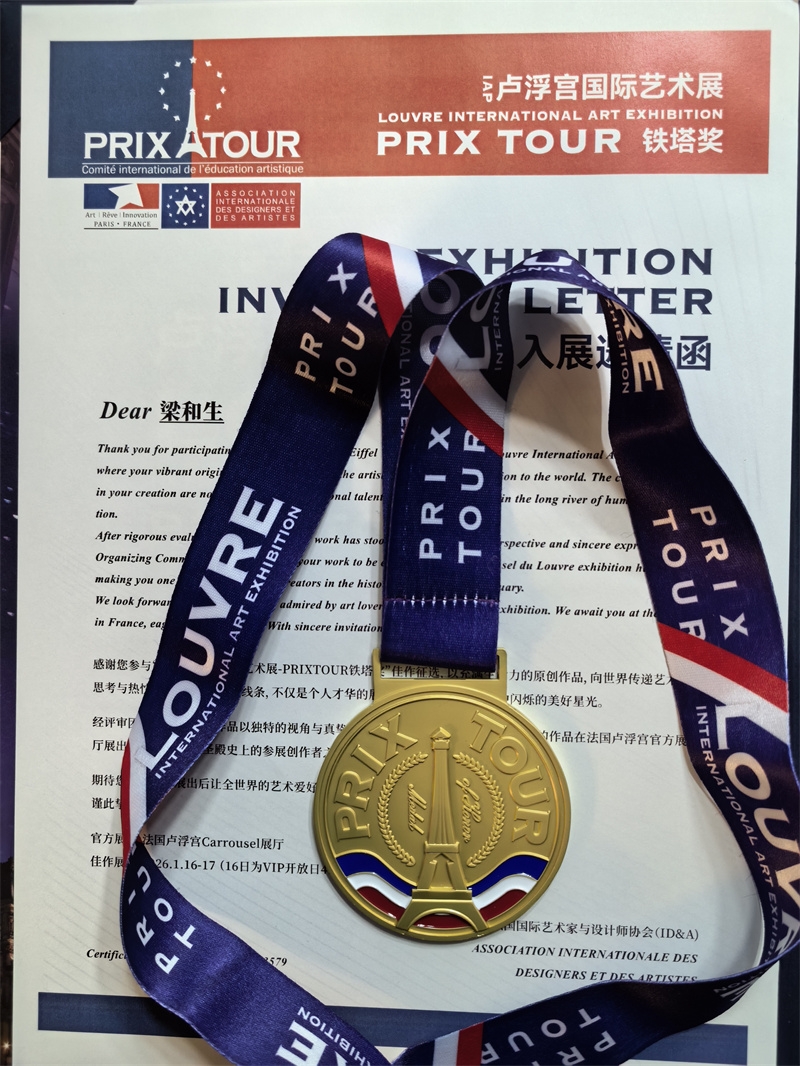 法国巴黎罗浮宫:我们荣幸的宣布:来自中国的著名风水书画大师梁和生,荣获2025法国巴黎罗浮宫艺术展最高荣誉奖—铁塔金奖!