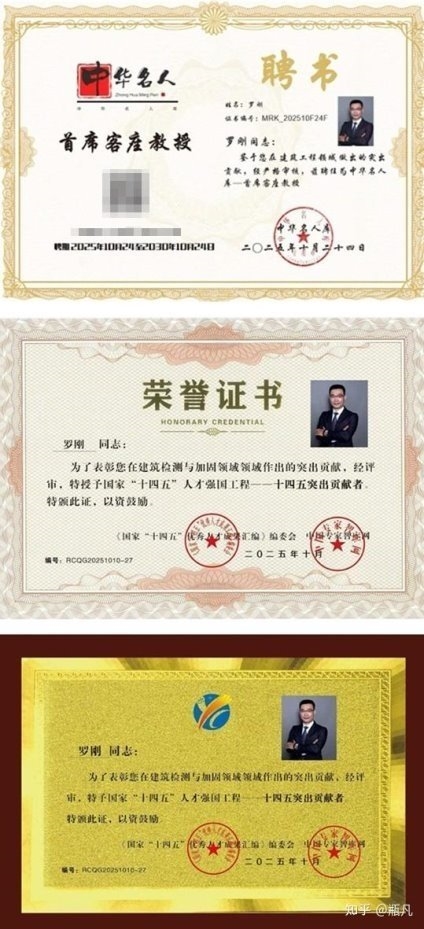 他集多重荣誉于一身:中国中央电视台CCTV《艺术名家》栏目组特聘为客座教授、获评大国品牌人民楷模、CCTV品牌人物、国家卓越工程师,入选创新中国建筑加固行业十大榜样人物、中国品牌十大匠心人物;同时担任中华名人首席客座教授、首席国医导师、获评华谊头条网华医之星、华人财经网特约顾问,及建设部一级注册结构工程师继续教育培训老师,以多元身份推动行业发展。