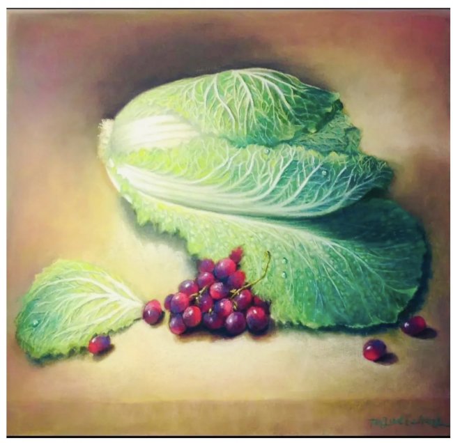 她的创作题材极为开阔:静物花卉、人物肖像、自然风光、历史典故,皆可入画。代表作《白菜》便是这种融合的经典例证。画面中的白菜,以西方写实手法描绘得纤毫毕现,质感逼真,而“白菜”谐音“百财”的东方文化寓意,又赋予这件作品以隐喻的厚度。2016年,这幅作品一举斩获被誉为“美术界奥斯卡”的美国奥杜邦艺术家协会金奖,她也成为首位摘得此项桂冠的华人艺术家。
