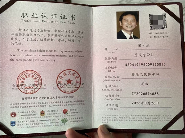 并且,在梁和生“中国易经文化传承师”第一份证书的启动下,易学传承从此会正式成为一种职业,一个文化行业 ,对促进我国目前的文旅发展、非遗传承、传统弘扬、促进就业和待业等…都有很大的帮助和意义!也是易经文化专业传承的里程碑!