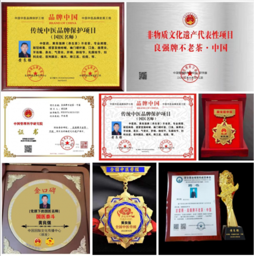 北京国医馆海南海天分馆黄良强国家级中医大师,中医药养生,黄良强牌养生茶《不老茶》吉雷斯世界纪录金奖。天下长寿美容茶纯鲜,活性,无毒。〈组成〉不老树叶,诺丽叶,葛根,山楂,杜仲,红景天,黄芪等。