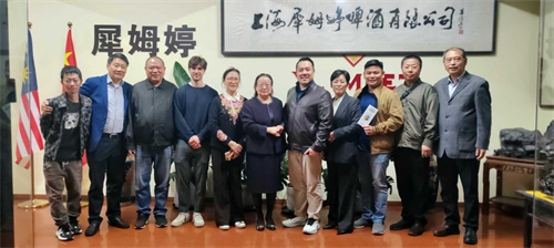当黄明达先生一行走进犀姆婷啤酒厂,中马国旗随着微风飘扬,黄丽娟致热情洋溢欢迎词,“有朋自远方来,不亦乐乎”,强调今日相会是美酒遇知音的啤酒盛宴,“一带一路”铺就今日共同探索养生啤酒的契机。参观中大家立刻被其兼具东方美学与现代质感的包装设计吸引、尤其是与海派艺术大师吴昌硕诞辰180周年活动,传统乐器二胡著名演奏家马晓辉、国际设计大师王小慧等联名专属定制的标签令大家眼前一亮,那是一种令人一眼难忘的高雅——简约而不失精致,低调中透着奢华,此刻犀姆婷专属定制的啤酒化身精灵传播不同领域的文化属性,代表团成员们欣然在瓶身之上签名留念,仿佛是为这份跨越国界的美味与友谊留下注脚。