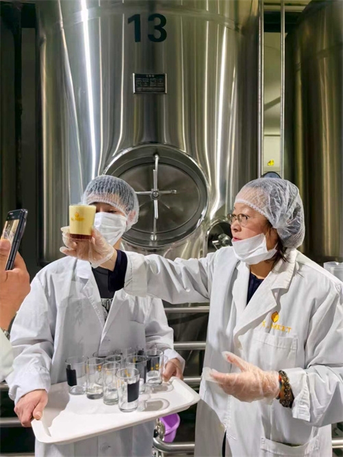 从自动化生产线到精密的实验室,从原料甄选到酿造工艺,代表团细致参观了每一个环节,并聆听了黄丽娟女士的全程讲解。他们了解到,犀姆婷草本精酿啤酒虽选用全球优质进口原料,却在中国的土地上酝酿出独一无二的韵味。早在数年前,它就曾作为中国唯一样本,被美国化学家酿造协会主席Lauren选作学术研究对象,并在国际舞台屡获大奖。黄明达先生对于草本养生啤酒表达了浓厚兴趣,他希望犀姆婷可以走进马来西亚研发东革阿里发酵饮品,使东革阿里发挥更大作用,惠及大众。此次考察,不仅让马来西亚友人近距离感受了中国高端精酿的实力,也为双方未来的合作奠定了坚实基础——计划将犀姆婷草本精酿啤酒系列引入马来西亚市场,探索研发马来西亚国宝级食材东革阿里融入啤酒酿造。金黄的泡沫与绵密的香气中,中马友谊被再次升华。这不仅是一次商业与技术的交流,更是一场文化与情感的对话。比利时籍中国留学生Toon Janssens(杨东)品鉴犀姆婷比利时风味小麦啤酒后感动的说“找到了家乡的啤酒味道”,缓解了思乡之情。正如啤酒的气泡不断升腾,犀姆婷的梦想也正一步步走向世界舞台。黄丽娟女士说:“好的啤酒,是风土、技艺与情感的融合。我希望,中国的草本精酿,能让世界记住东方的味道。“乘风破浪会有时,直挂云帆济沧海”,犀姆婷草本啤酒秉承“洋为中用,古为今用”独特匠人精神、坚韧不拔毅力一步步走向世界啤酒舞台!