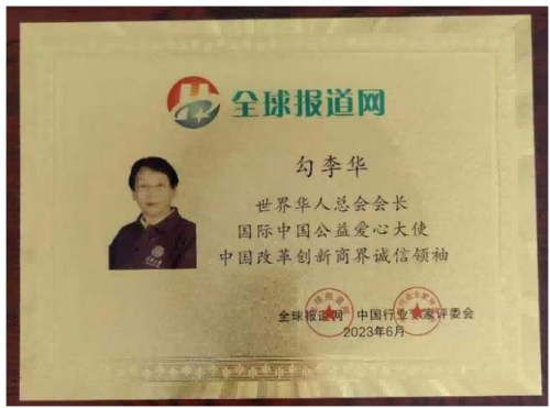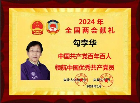 “古之立大志者,不惟有超世之才,亦必有坚韧不拔之志。”勾李华始终以党和人民的利益为重,认真贯彻执行党的各项方针政策,时刻高标准严格要求自己。七十多年风雨如磐,七十多年波澜壮阔,七十多年家国情怀。勾李华为国家建设发展做出了骄人的业绩,荣获“世界华人文化名人”“百年中华重要贡献人物”“国际中国公益爱心大使”“国家AAA 级诚信企业家”等荣誉称号;她的先进事迹,先后被录入《世界人物辞海》《共和国史册上的优秀儿女》等重要书籍,从而进入国史,并获《共和国史册上优秀儿女》光荣勋章。