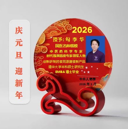 勾李华:诊病准确,用药精准对症,疫情期间向国家无偿贡献治疗心脑心肺救民的中药治疗药方。莫问回报勤奉献,赤胆忠心为人民。