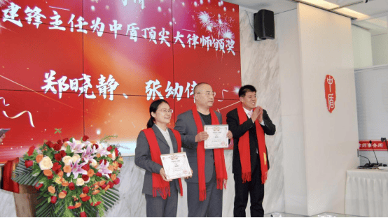 备受瞩目的颁奖环节依次展开。首先是“中盾顶尖大律师”的颁奖。郑晓静、张幼伟两位律师获得这一殊荣,这是对两位律师深耕专业、成就斐然的褒奖,更是中盾“专业务实、追求卓越”理念的最佳注脚。他们真挚的获奖感言,道出了荣誉背后的责任和故事,为在座的律师同仁树立了学习标杆。