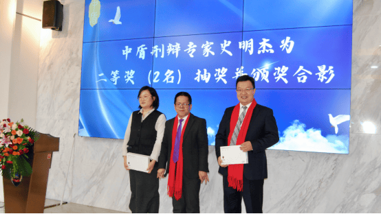 随后,史明杰主任抽取了二等奖(pad平板)两名,毕霈霈律师及郭聪律师成为二等奖的幸运星,史主任为两位颁奖并合影。