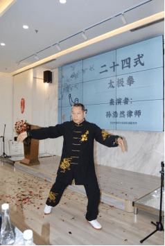 孙浩然律师的“二十四式太极拳”表演,刚柔并济,动静相宜,恰如律师职业智慧与修为的写照,为紧张的会议节奏带来一抹从容意境。