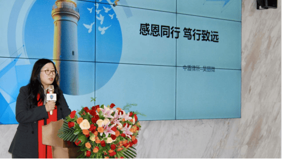 “中盾知名大律师”奖项表彰了吴丽微、邓雷、董振军、刘东海、仲惟𨱔五位律师。其后由吴丽微律师代表“中盾知名大律师”发表了主题演讲。吴律师幽默的开场,以及在《法治明灯——感恩同行 笃行致远》的演讲中对个人成长感悟、专业领域洞见、未来展望的叙说,情真意切,给大家留下了深刻的印象。