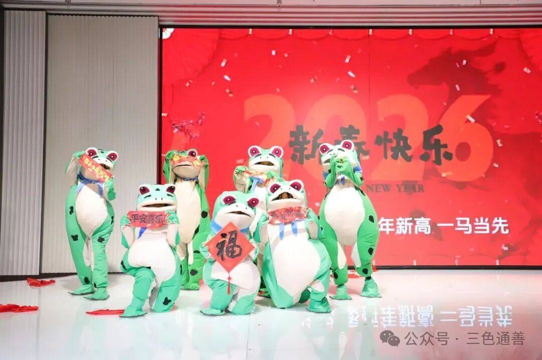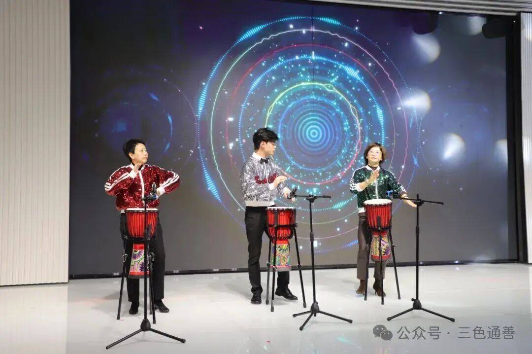 晚宴节目精彩纷呈。舞蹈《八方来财》《蛙哈哈》《大花轿》轮番上演,歌曲合唱与独唱深情动人,礼仪操展示专业风采,游戏互动妙趣横生。更有激情澎湃的非洲鼓表演穿插于晚宴节目之间,鼓点铿锵有力,节奏热烈奔放,为现场注入蓬勃能量,也象征着瑞泰江苏勇毅向前、活力无限的发展姿态。