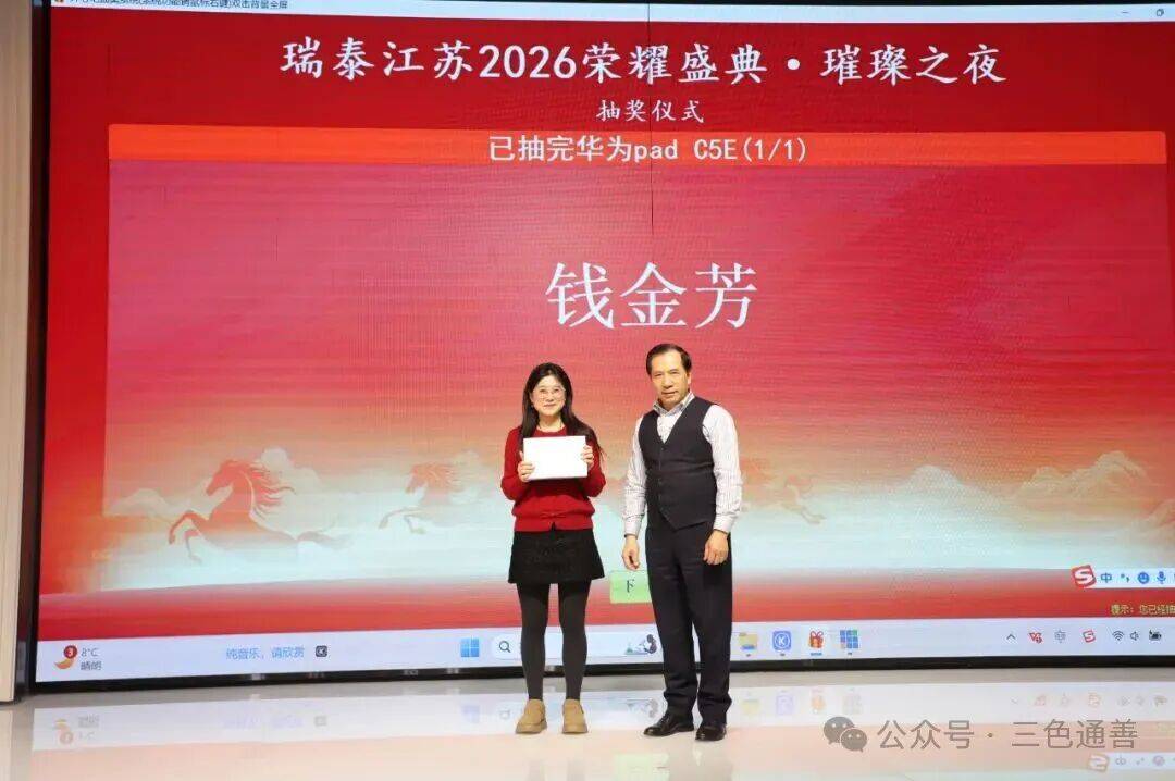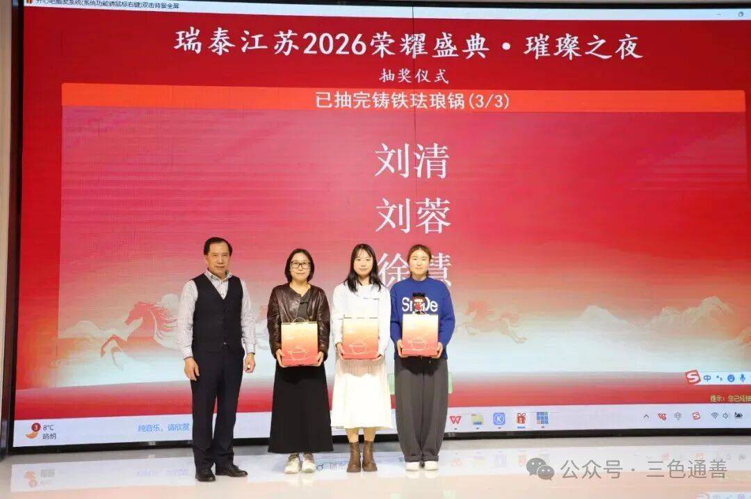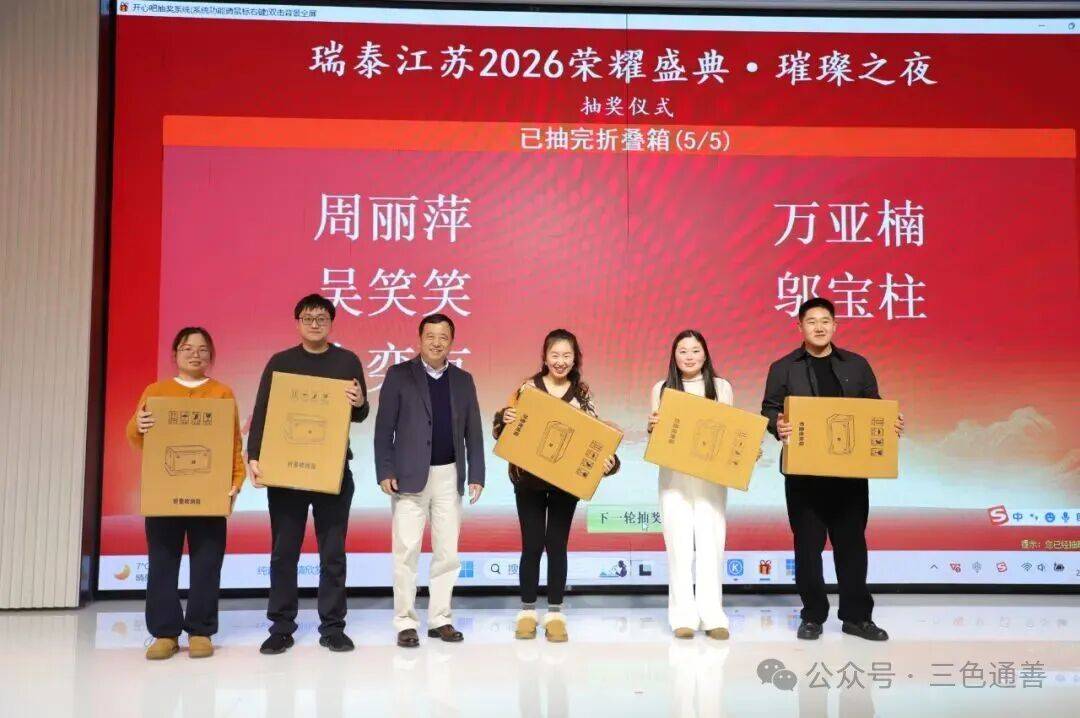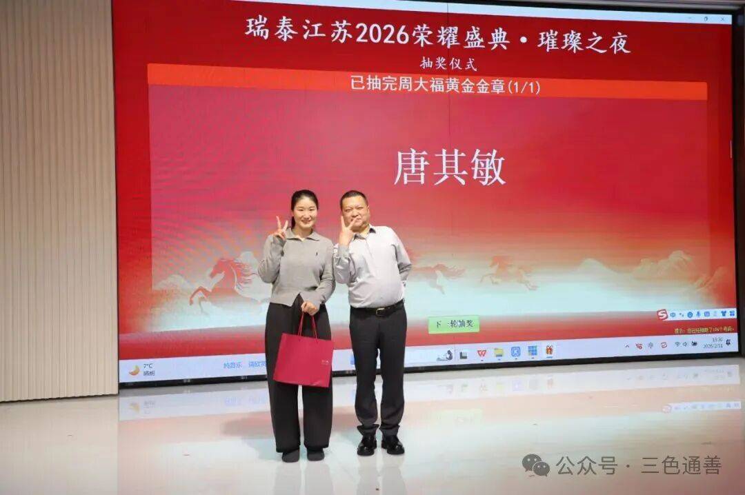 2026年2月11日,瑞泰江苏2026荣耀盛典·璀璨之夜在泓历皇朝大酒店隆重举行。全体瑞泰江苏同仁欢聚一堂,在温暖与激情交织的氛围中,共同回顾奋斗足迹,展望崭新征程。本次年会以“实干为基,静耕致远”为主题,既是一场凝心聚力的年度总结大会,也是一场属于瑞泰江苏人的荣耀盛宴。