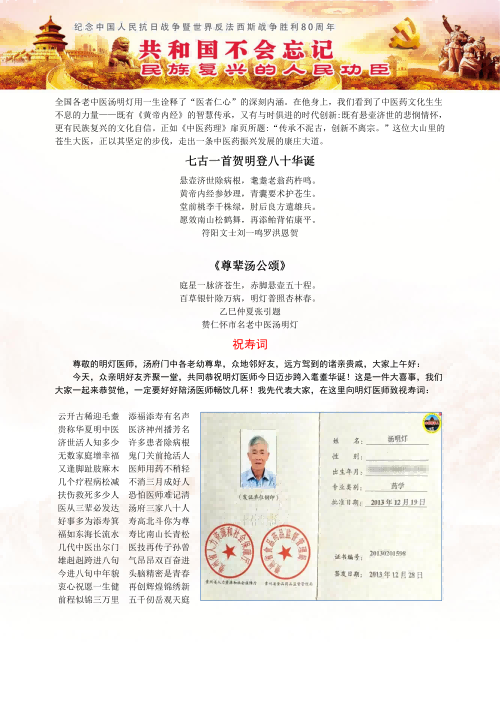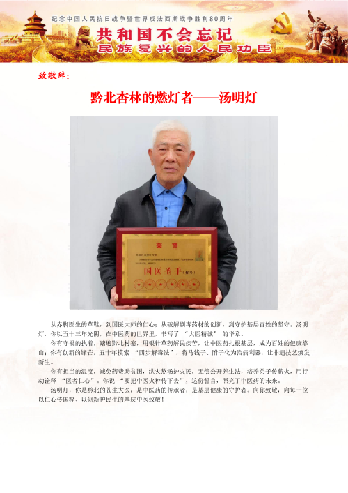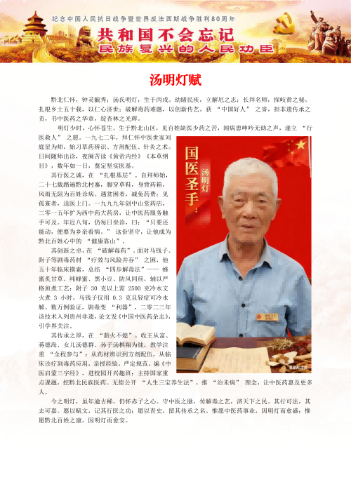赞仁怀市名老中医汤明灯
