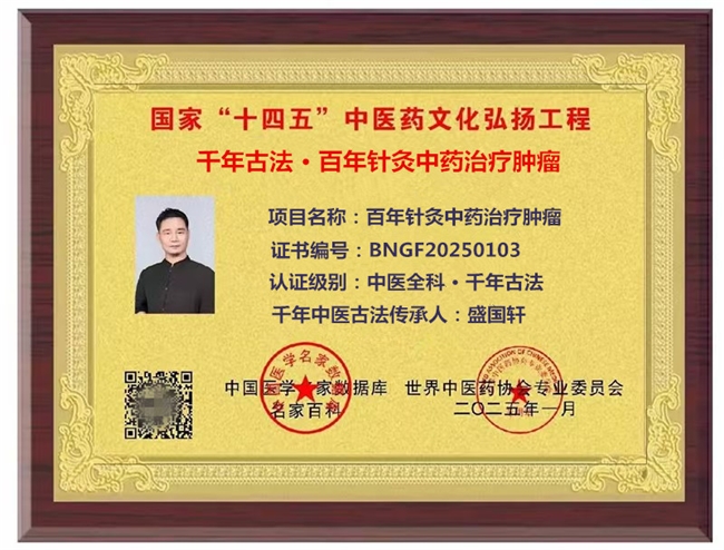 盛国轩大师深知自己的使命,不仅仅是继承和发扬中医药学术和文化,更是要推动中医药事业的创新发展。他一直在研究治疗癌症肿瘤的方法,并且取得了一些成果。这不仅仅是一张获奖证书和,结题证书,更是对我多年努力的认可。作为一名中医人,盛国轩大师深知一个人的力量是有限的。所以,他一直在招收有爱心的做徒弟,现在全国各地已经有700多位弟子遍布全国各地和海内外。