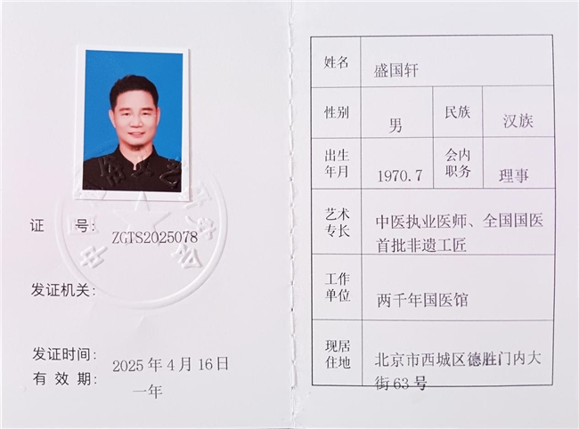 盛国轩(九代祖传中医世家)、首批国非遗传承人舌下取栓创始人,红墙御医、教授,斯里兰卡中医药大学国际博士盛国轩大师 为中医药事业作了重要贡献,造福人类。现任两千年专家智库主任委员、两千年国医馆共同院长、北京盛济中医堂院长,五行源中医院院长、中华奇针创始人、全国卫生产业企业管理协会专家组成员、中华名医盛国轩,是最为杰出的代表之一,国家卫健委十四五规划课题研究负责人,并且颁发获奖证书,结业证书被收录国家数据库。