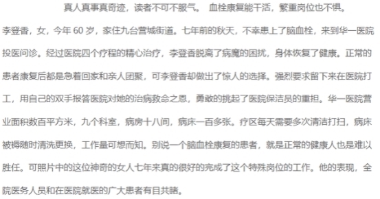 最后"九台华一医院"全体工作人员祝愿九台市父老乡亲身体健康,万事如意。祝愿患者朋友早日康复,合家欢乐。