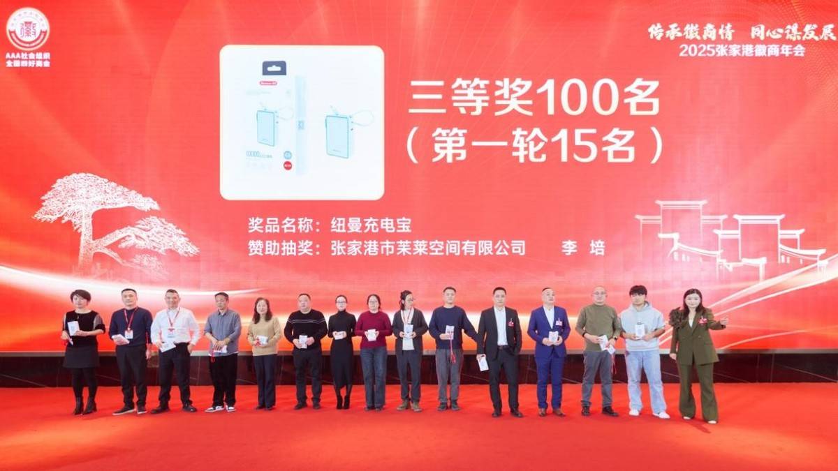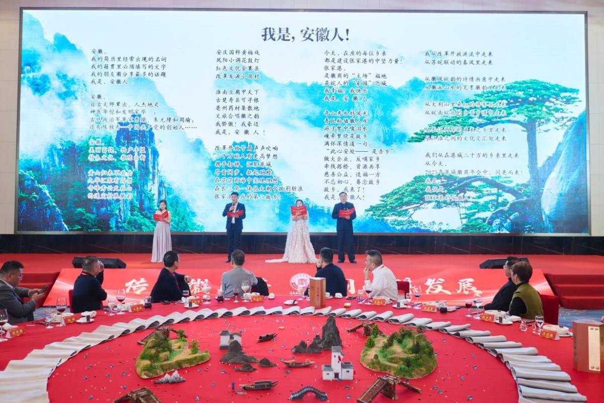 年会文艺演出精彩不断。诗朗诵《我是,安徽人》道出浓浓乡情;会歌《共赴大美》合唱气势恢宏,彰显团结力量;舞蹈《相亲相爱一家人》舞出温情与团结;笛子独奏《扬鞭催马运粮忙》奏出拼搏奋进的激昂旋律。现场穿插的抽奖、抢红包环节,更添欢乐气氛。