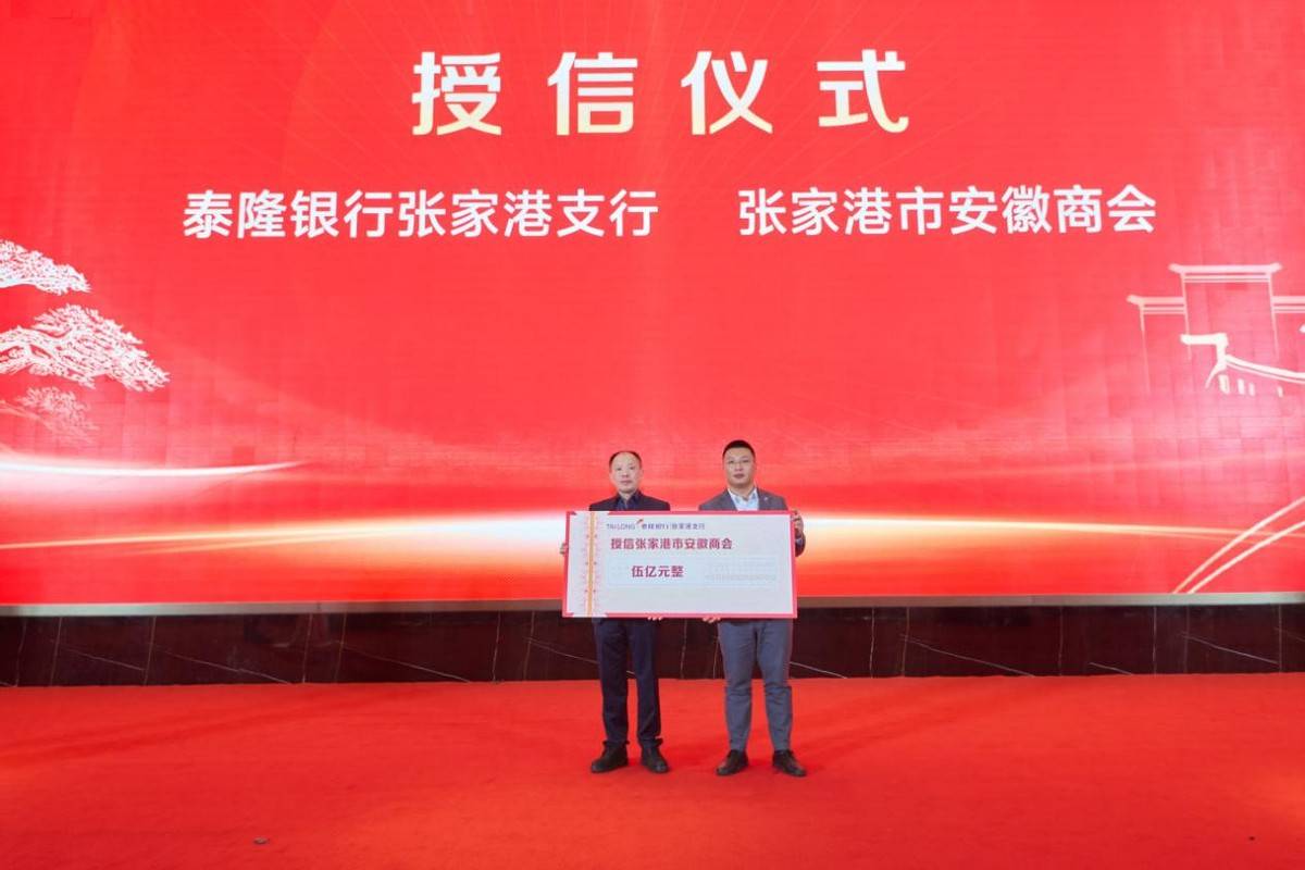 年会现场举行了意义重大的 “张家港市安徽商会与泰隆银行张家港支行授信仪式” ,泰隆银行为商会会员企业提供总额5亿元的授信支持,为会员企业发展注入金融活水。