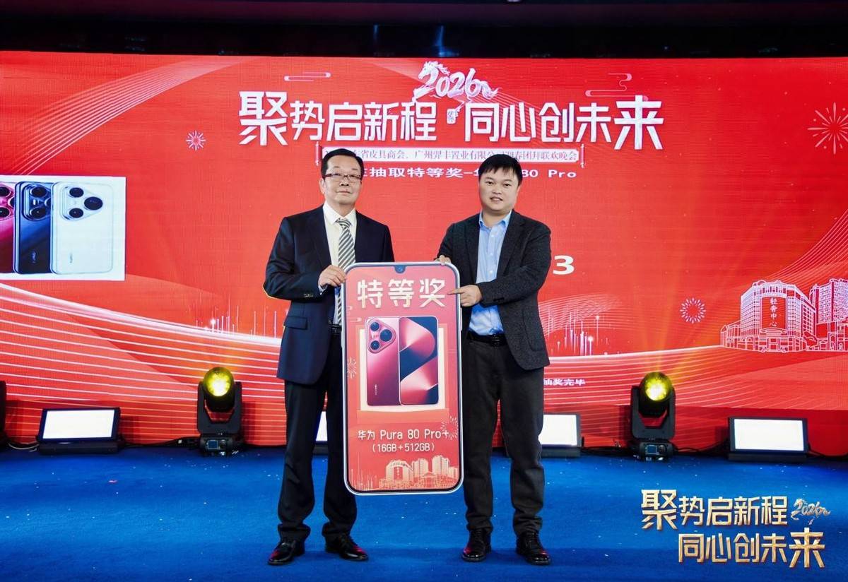 2026年1月16日,由广东省皮具商会与广州羿丰置业有限公司联合主办的“聚势启新程 同心创未来”迎春团拜联欢晚会,在白云皮具城轻奢中心会议厅隆重举行。本场晚会,政府领导、行业商(协)会领导、行业同仁、会员单位、商户代表、院校代表及媒体朋友600余人共襄盛会。