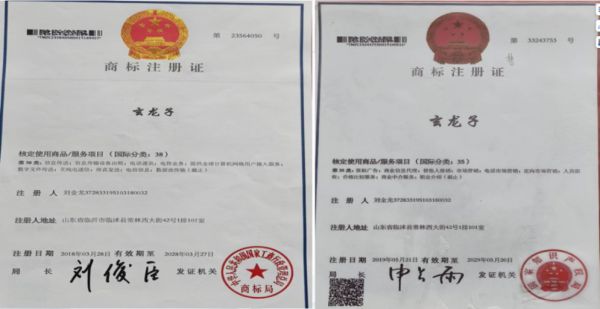 本人于2018年11月8日进行国作登字-2018-F00661195号玄龙子商标注册登证。