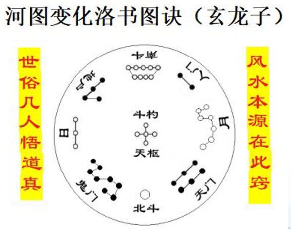 根者、阴生之本源也,乾坤艮巽四大关窍、亢鬼娄牛“四金”之所,巽四又是“源海门”地户者也。中五天心也,立极之所也,乃是天枢、斗杓运驻之所、统中五皇极而为九,分而布之;九个星辰指九星配行九宫也;日月者,以喻阴阳运筹、行宫顺逆之日月星辰之流行也。故此言“九星八卦五四为尊”、九星、九宫贪弼轮也,八卦言地盘廿四位配用也;