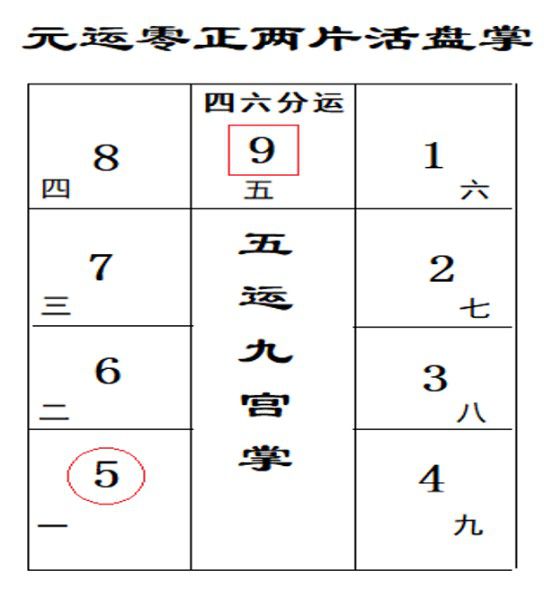 此洛书九宫配九星,即河图之一六、二七、三八、四九、五十之数;一阴一阳生成十干,十干化为九气,先贤云:河图洛书相为表里,皆此理也!五四、黄极、关窍也;然古贤又从其内、隐了两元、元空挨星大法、三元用两元、阴阳顺逆之法也。“中五两头四六分”也;文中虽言“五四”、其“五六”在焉!其在者、乃五运前十年归四运为上元,后十年归六运属下元。山水阴阳、零正、雌雄;山归山、水归水;顺者、顺“五六”;逆者、颠“五四”也。圣贤之道、妙哉!